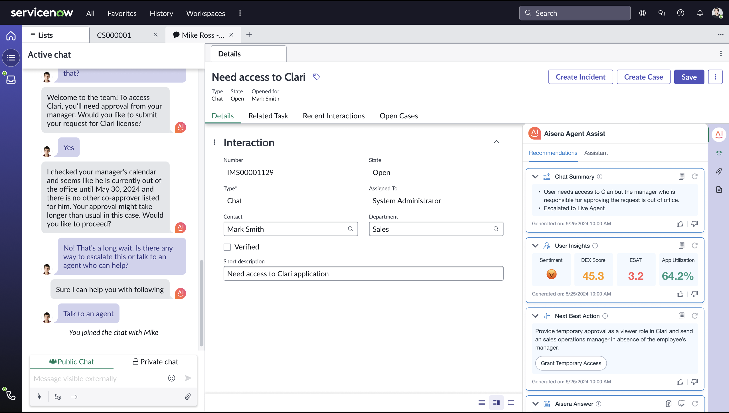 Aisera’s Sentiment Analysis is known as User Insights within the Agent Assist application/bot.