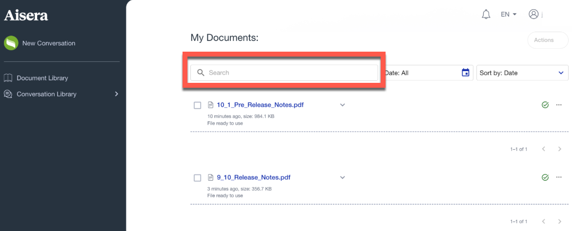 After you have uploaded documents, you can search for them by Title within your Document Library.