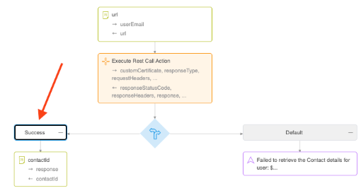 successoutput variable (indication of whether the operation was successful) should be followed by a decision node based on the abovesuccessorfailureresult. In the case of failure, use the appropriate message node to display the error details. The following screenshot displays an example: