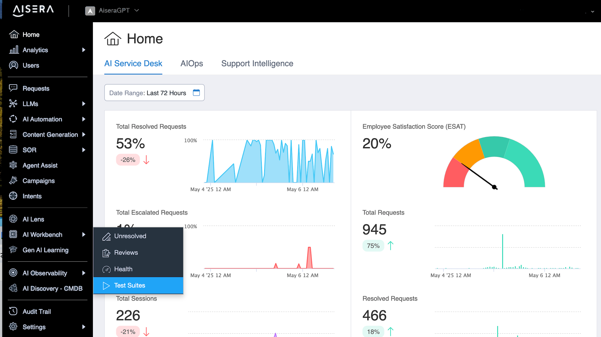In the Aisera Admin UI, navigate to AI Workbench > Test Suites.