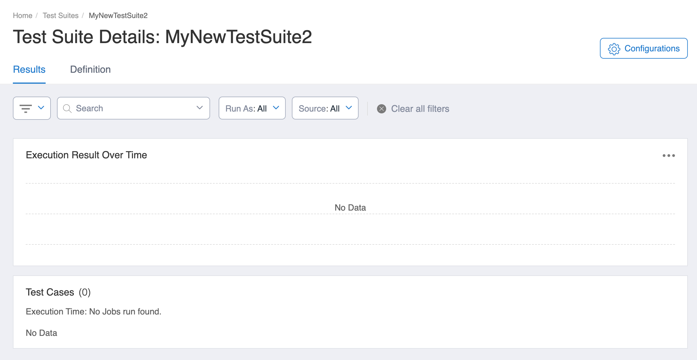 To Run the Test Suite, switch to the Results tab.