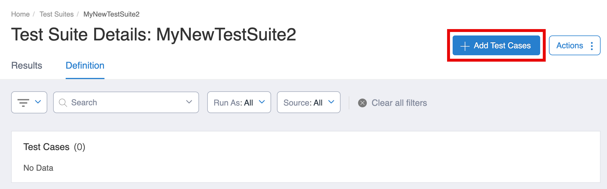 Select the Actions button and choose Add Selected to Test Suite.