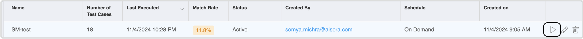 The Aisera Gen AI platform fetches your latest saved configuration and runs the Test Cases accordingly.