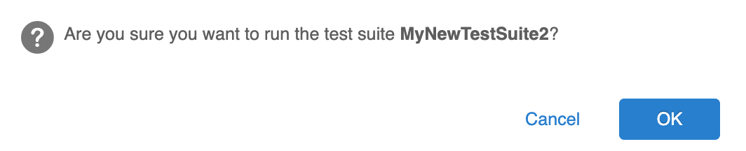 After you acknowledge that you want to run the Test Suite, a Success window will appear to let you know that you Test Suite job has been started.