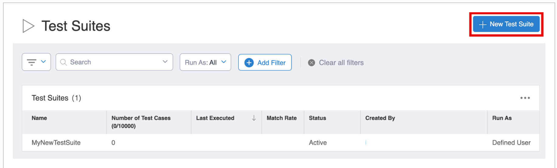 Select the + New Test Suite button.