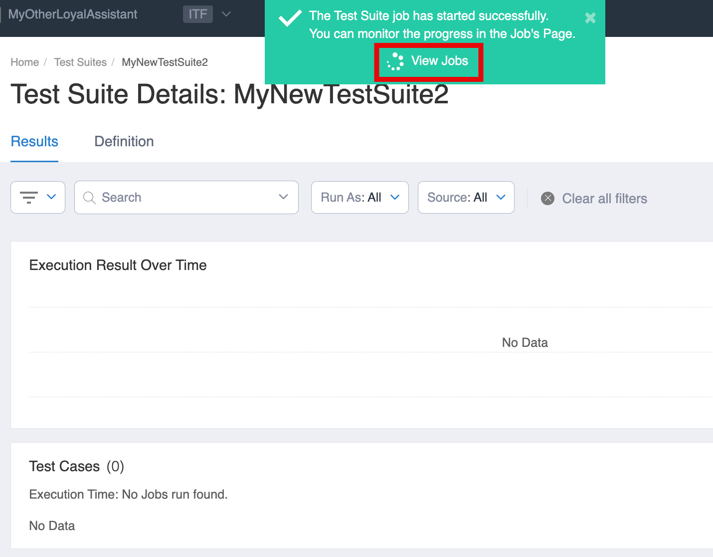 Click the Run Test Suite Job button.