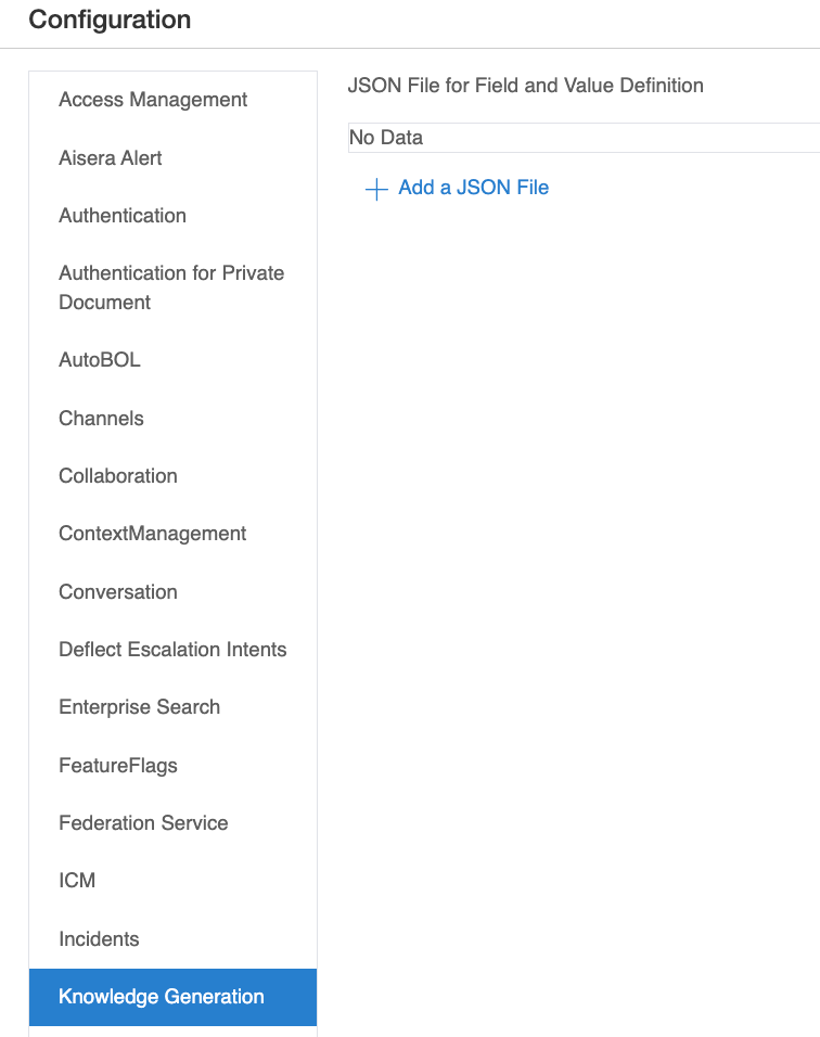 | JSON File for Field and Value Definition |                 |      |         | Choose a JSON File that adds a Value and Definition to Knowledge Base Articles |